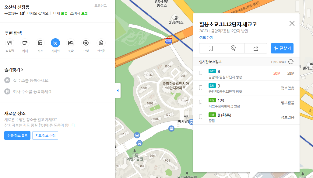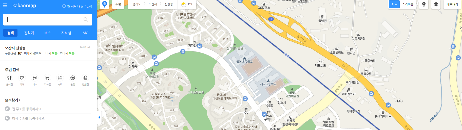 홈페이지를 통해서는 장소검색이나 길찾기, 버스, 지하철, 날씨, 스카이뷰, 로드뷰 등의 기능을 사용 가능하구요. 컴퓨터의 ip를 통한 주소로 근처를 탐색하실 수 있습니다.