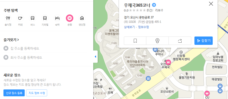 이를 통하여 음식점, 카페, 버스/지하철 정류장, 숙박, 은행, 편의점 등을 확인하실 수 있습니다. 즐겨찾기로 집 주소나 회사 주소를 등록해주시면 더욱 편리하게 다음지도를 바로가기로 활용 되어지겠네요.