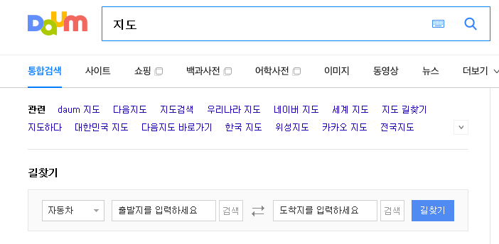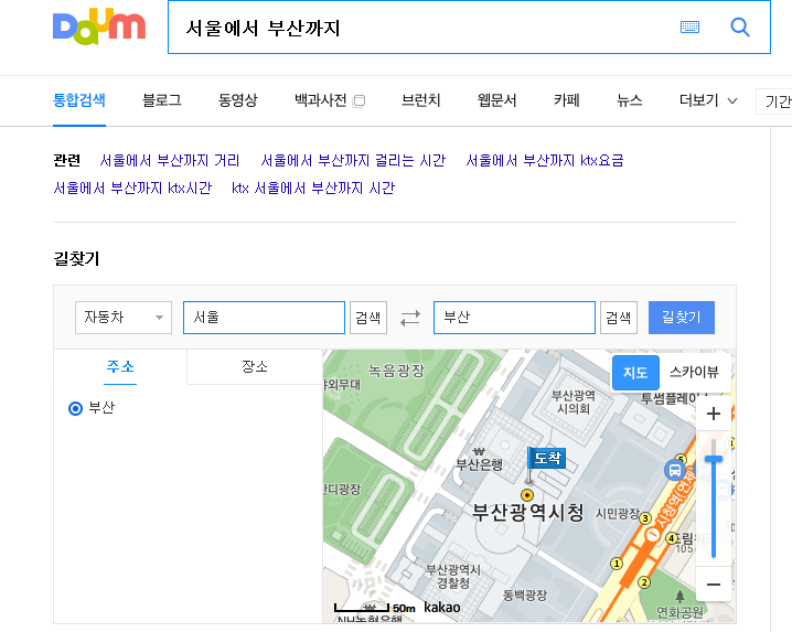 그 외에 daum검색을 잘 활용하시는 분들은 홈페이지나 앱을 사용하지 않고 검색만으로 바로 가기를 잘 사용 가능한데요. 출발지와 목적지를 검색하시면 길찾기를 지원하구요.
