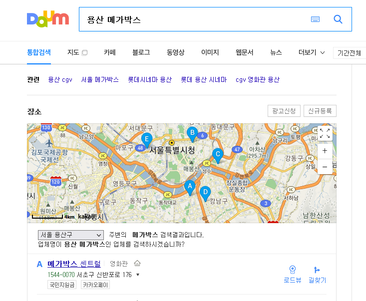특정 장소를 찾아주시면 거기에 따른 서비스를 다음지도를 이용하여 받으실 수 있습니다. 검색사이트와 지도와의 연계가 그만큼 잘되어져 있는 것 같네요. 이 기능은 카카오톡으로 점차 확장이 되어지는 것도 같습니다.