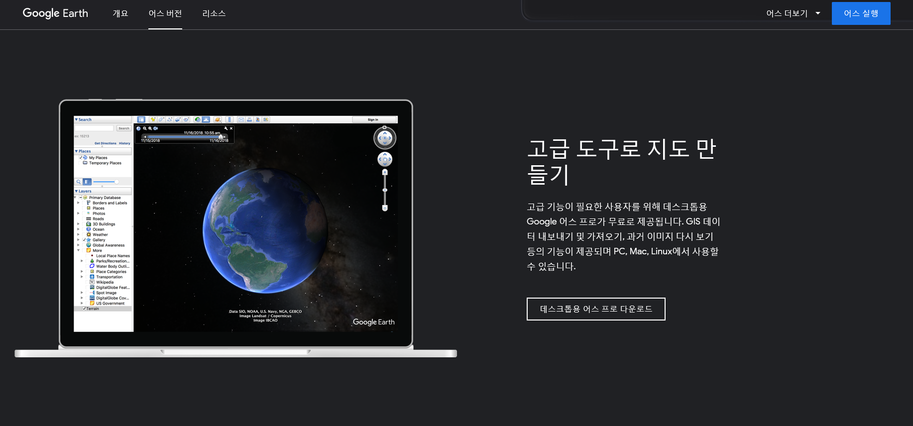 데스크톱용 어스 프로 - 구글어스 한글판 무료 다운로드