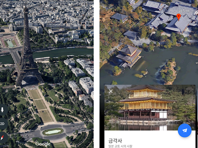 여기에서 위성 이미지, 3D 지형, 3D 빌딩 보기, 스트리트뷰, 360도 보기 등에 더 최적화가 되어진게 바로 Google Earth인데요. 특히나 위성으로 전세계의 다양한 곳들을 보고 확대하여 스트리트뷰로 확인하는데 이 만한게 없습니다.