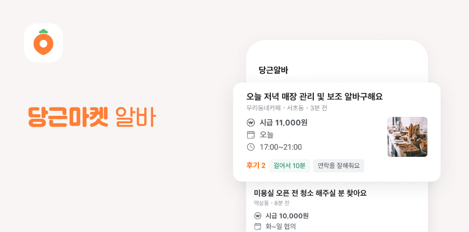 특히나 최근에 이슈가 되는 일이 있어서 그런지 기존에 당근마켓을 통한 일자리/알바 찾기를 모르셨던 분들도 이제는 아는 정보가 되어졌습니다.