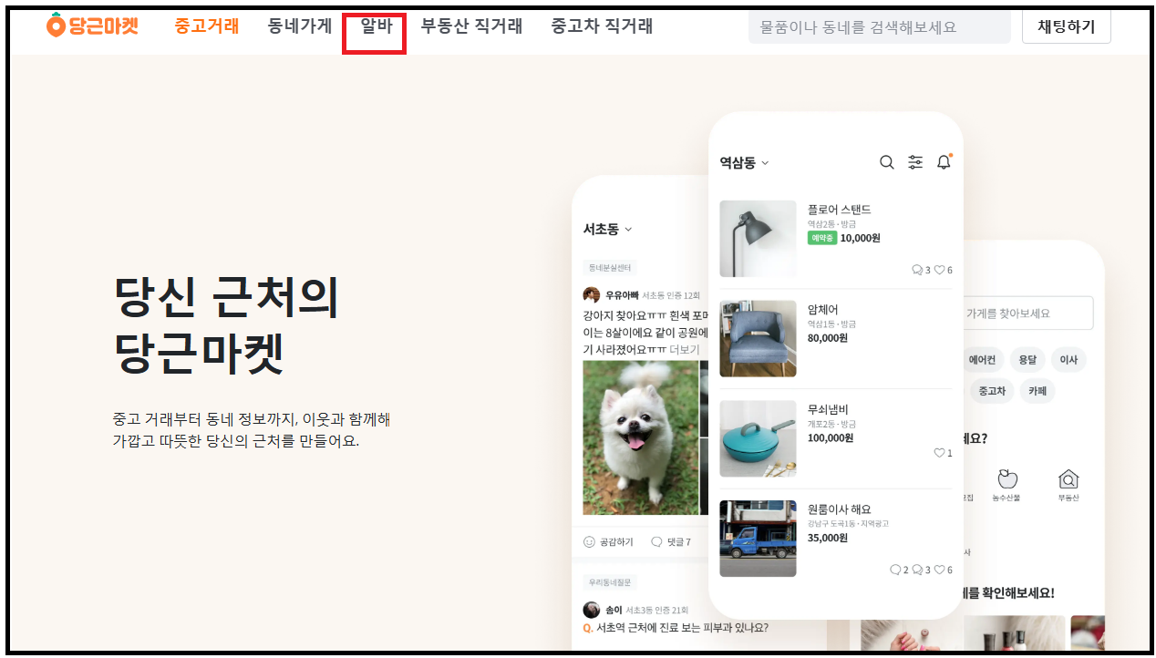서비스는 당근알바라고하여 온라인 홈페이지에서 가볍게 확인이 되어지구요.