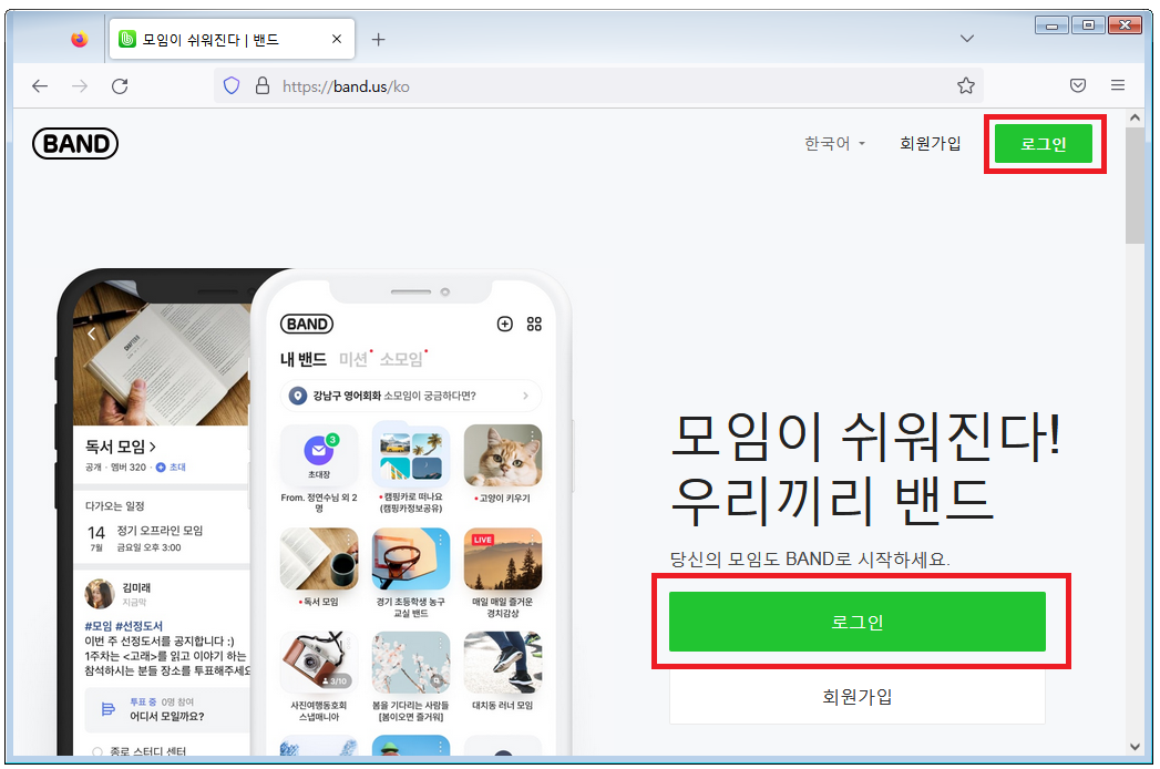 까는 과정이 완료가 되셨으면 이제는 실행되어서 로그인하시고 밴드 pc 버전을 이용하실 수 있습니다. 정리하자면 컴퓨터에도 모바일과 같이 BAND의 사용이 되어지는데요.